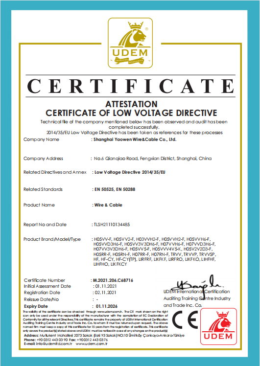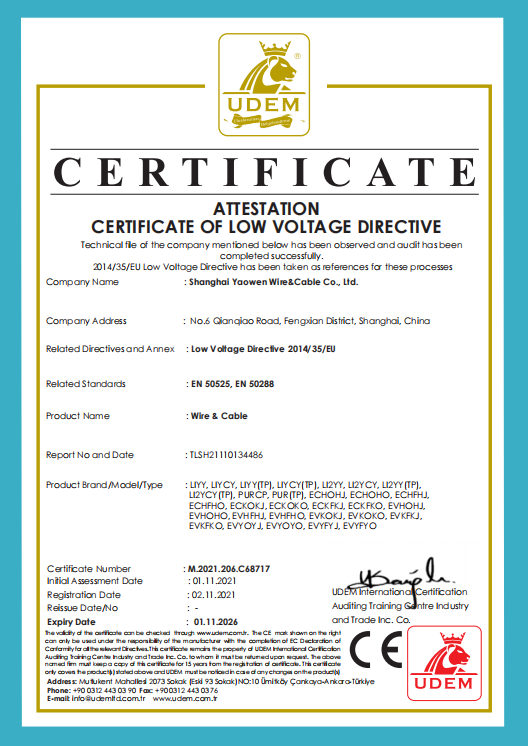 • 歐標(biāo)CE認(rèn)證電纜